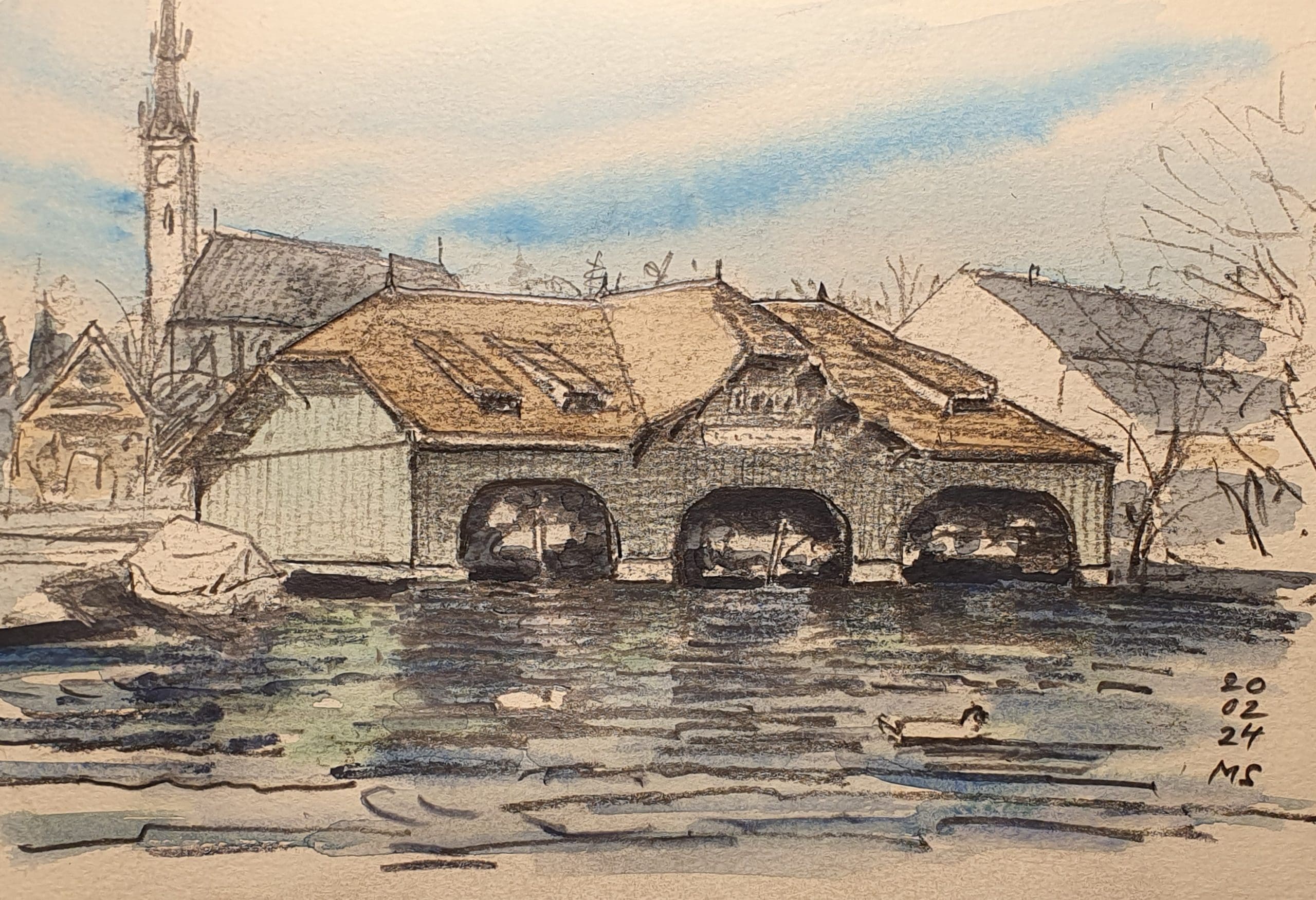 Aquarell, Bleistift, Papier